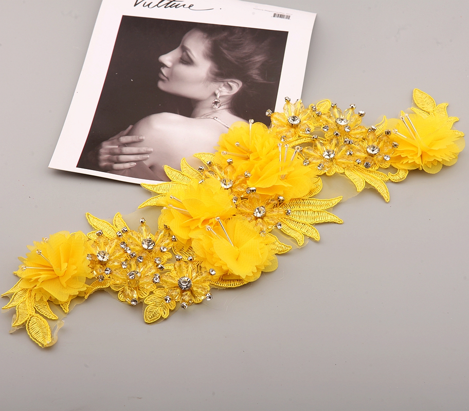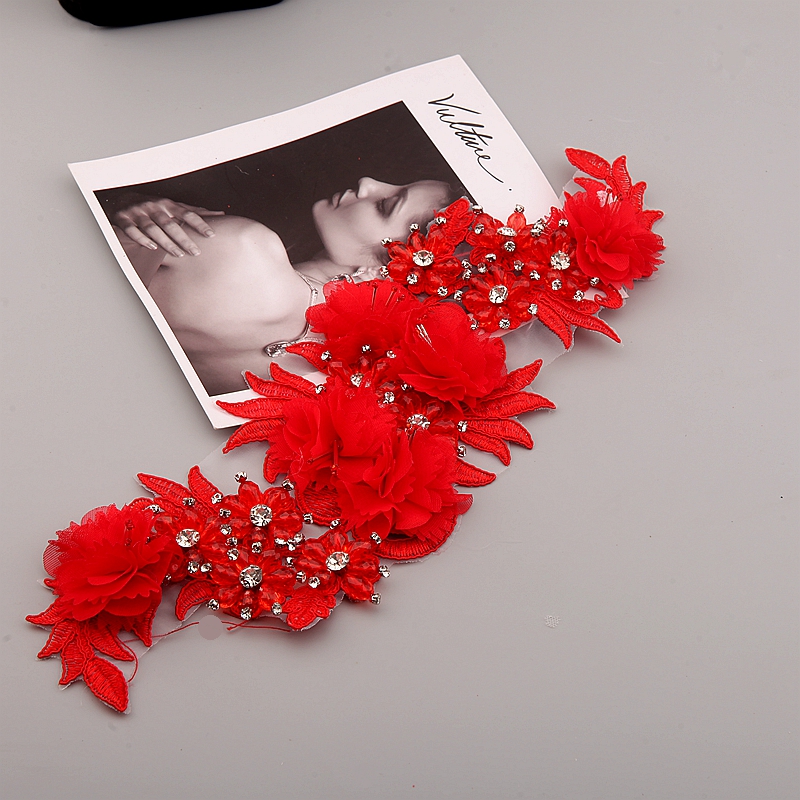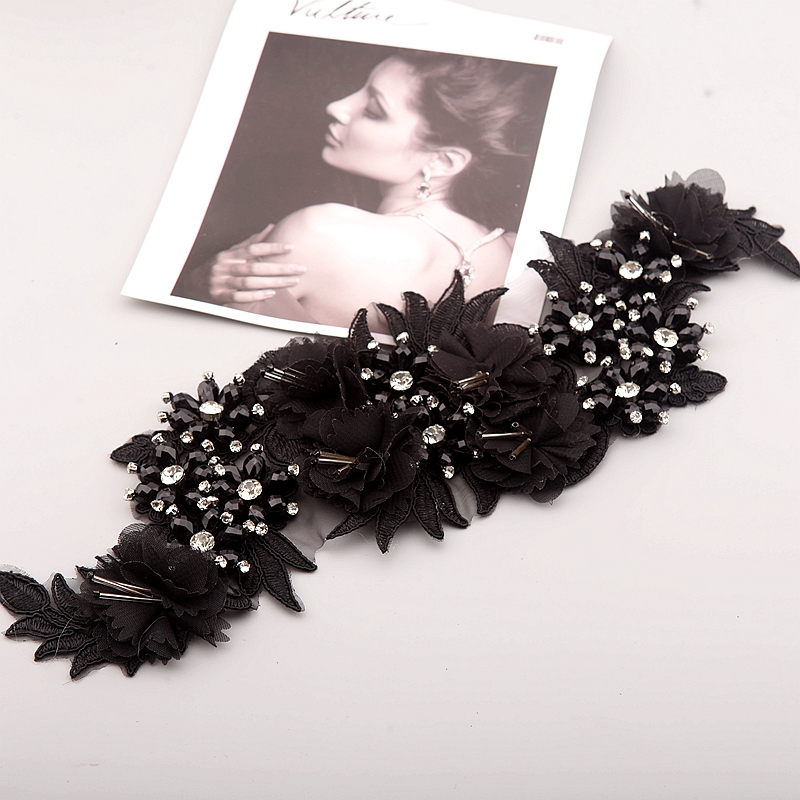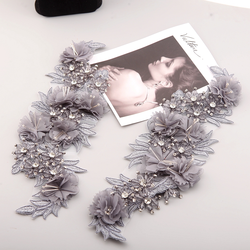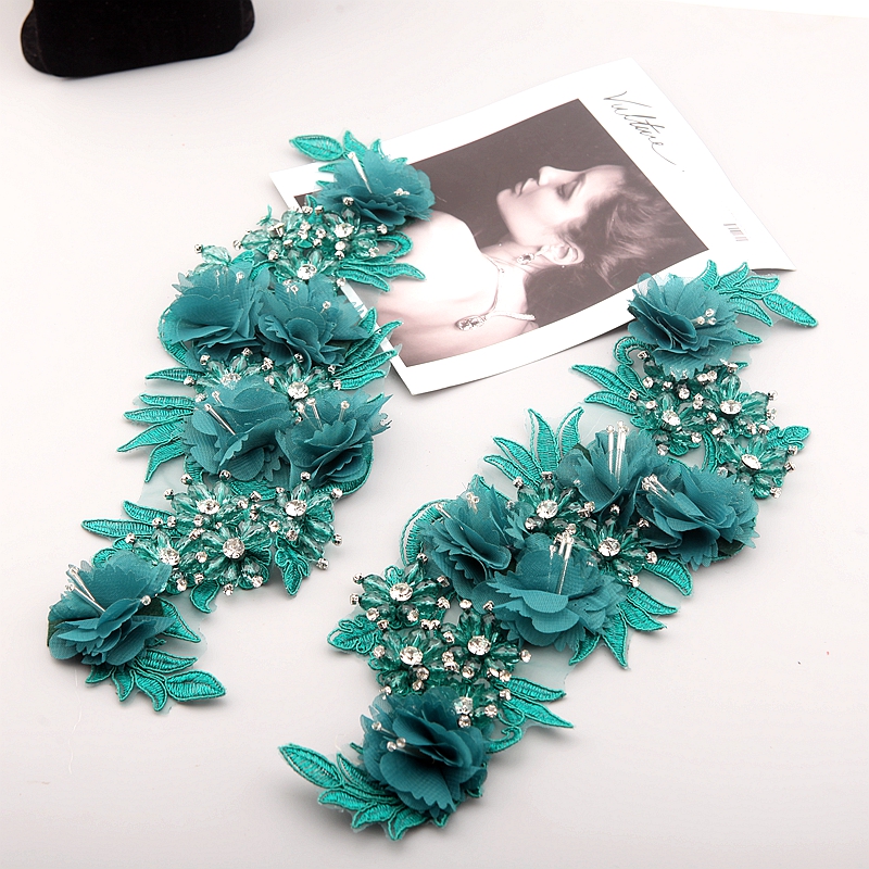 10 Color Beaded Sequins 3D Decals Mirror Flower Lace Fabric Evening Dress Front Chest Back Applique Patch Decoration