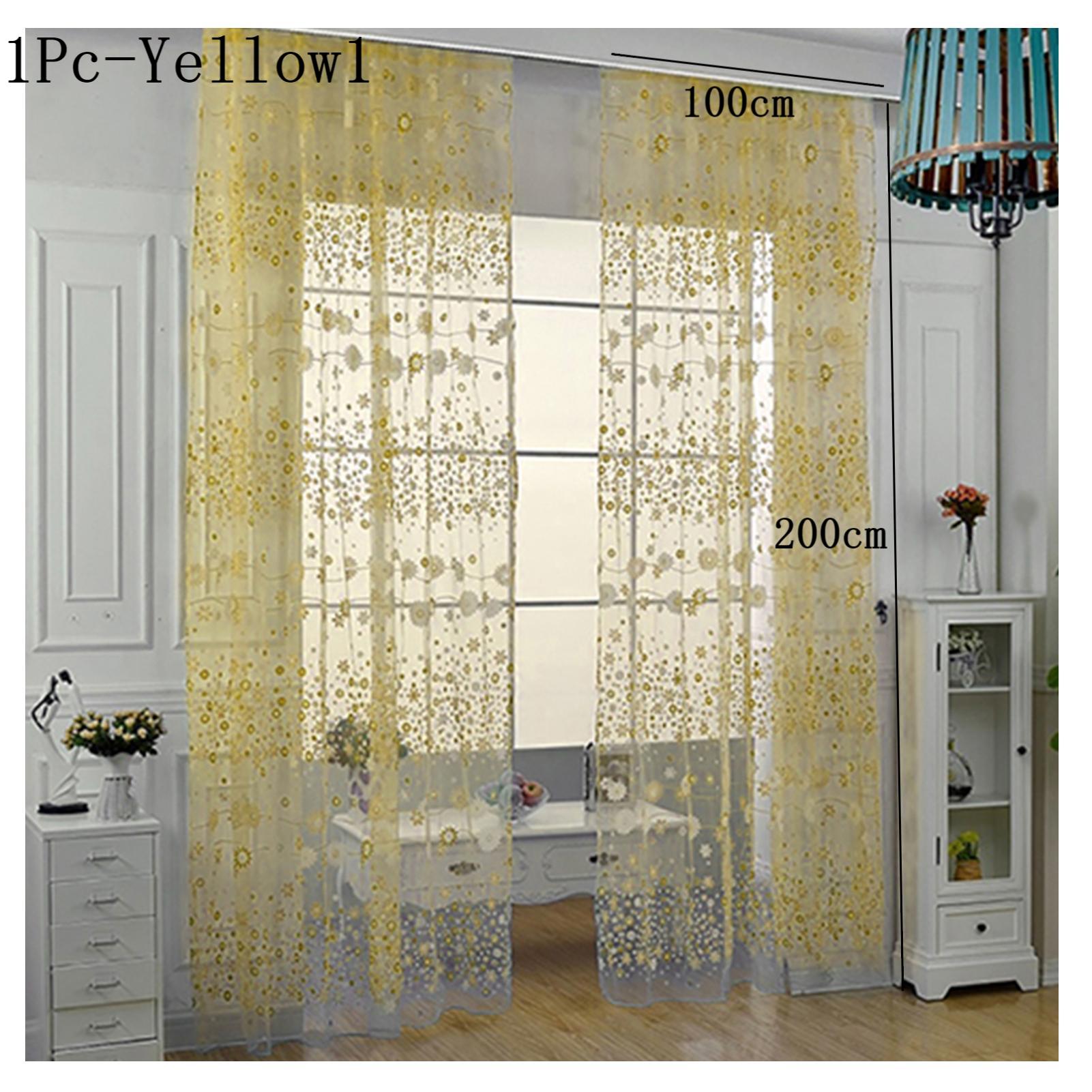 1Pc/2Pcs Soft Curtain 1*2m / 1*2.7m Lightweight Voile Curtain Reusable Polyester Peony Flower Printed Curtain Room Decoration