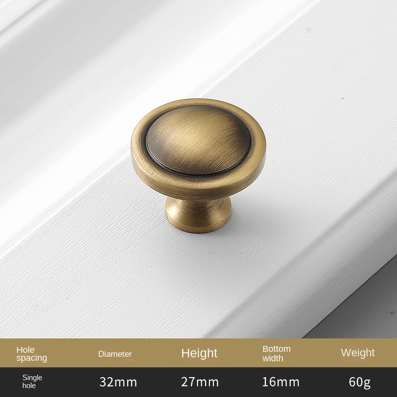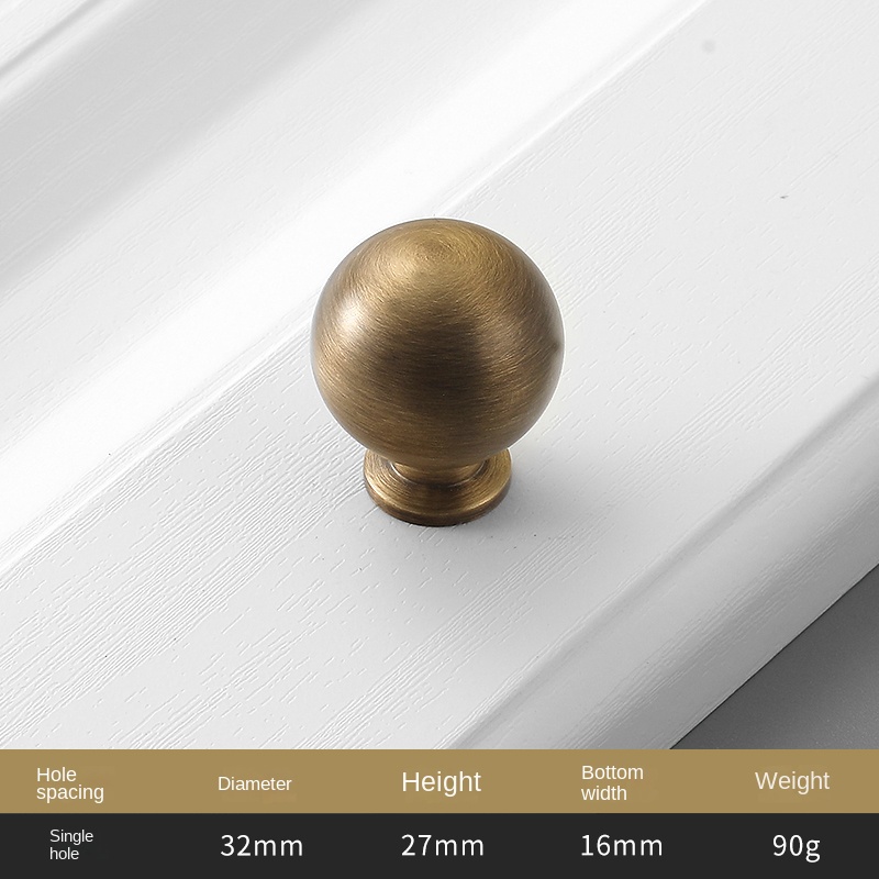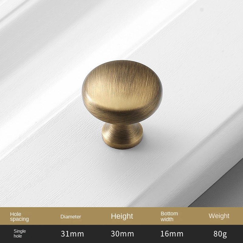 American pure copper solid furniture closet door brass single hole handle Chinese vintage cabinet drawer copper handle