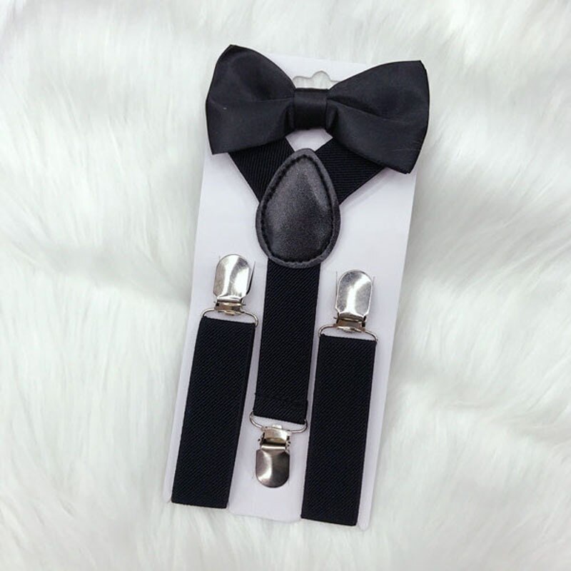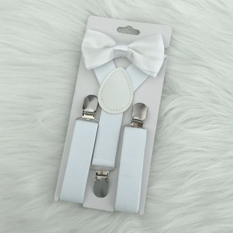 Bow Tie Suspenders Set For Baby Boys Elastic Solid Color Y-Back Braces Adjustable Suspender Children Matching Tuxedo Suit Brace