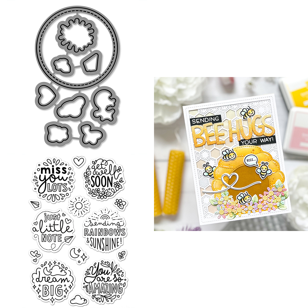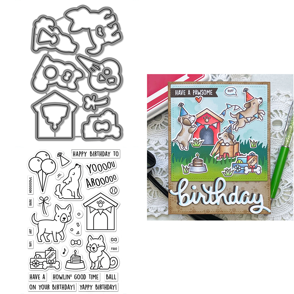 Critter Border Diglogue Cutting Dies Clear Stamps Happy Birthday Sentiments for DIY Scrapbooking Paper Cards Craft