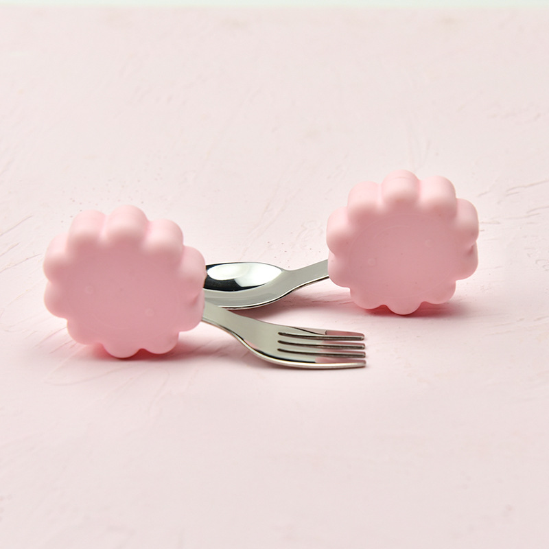 Soft Spoon for Baby Feeding Toddler Tableware Set Stainless Steel Utensil Cloud Toddler Dinnerware Cartoon Infant Spoon Fork
