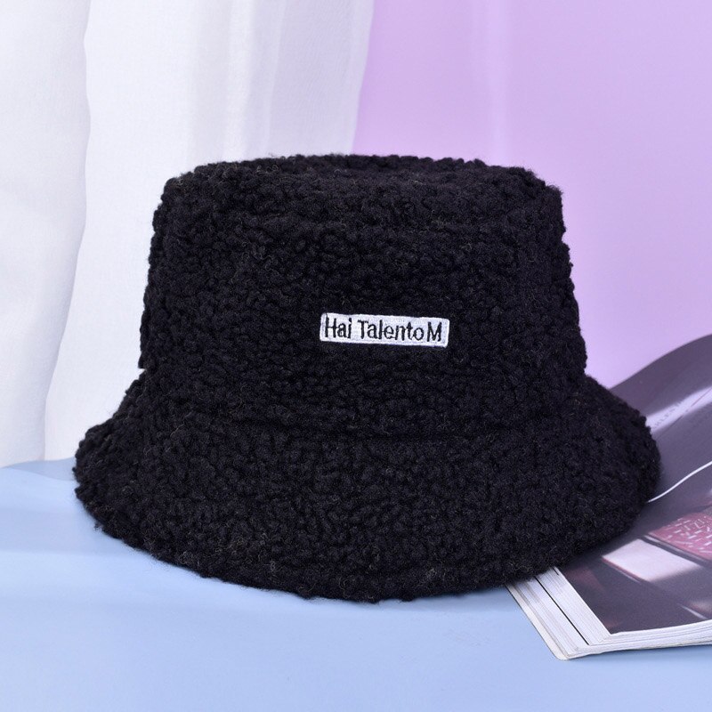 Winter Autumn Thick Warm Soft Lamb Wool Women Bucket Hat Solid Color Female Ladies Flat Top Hat Beanie Bonnet