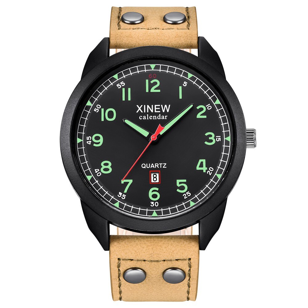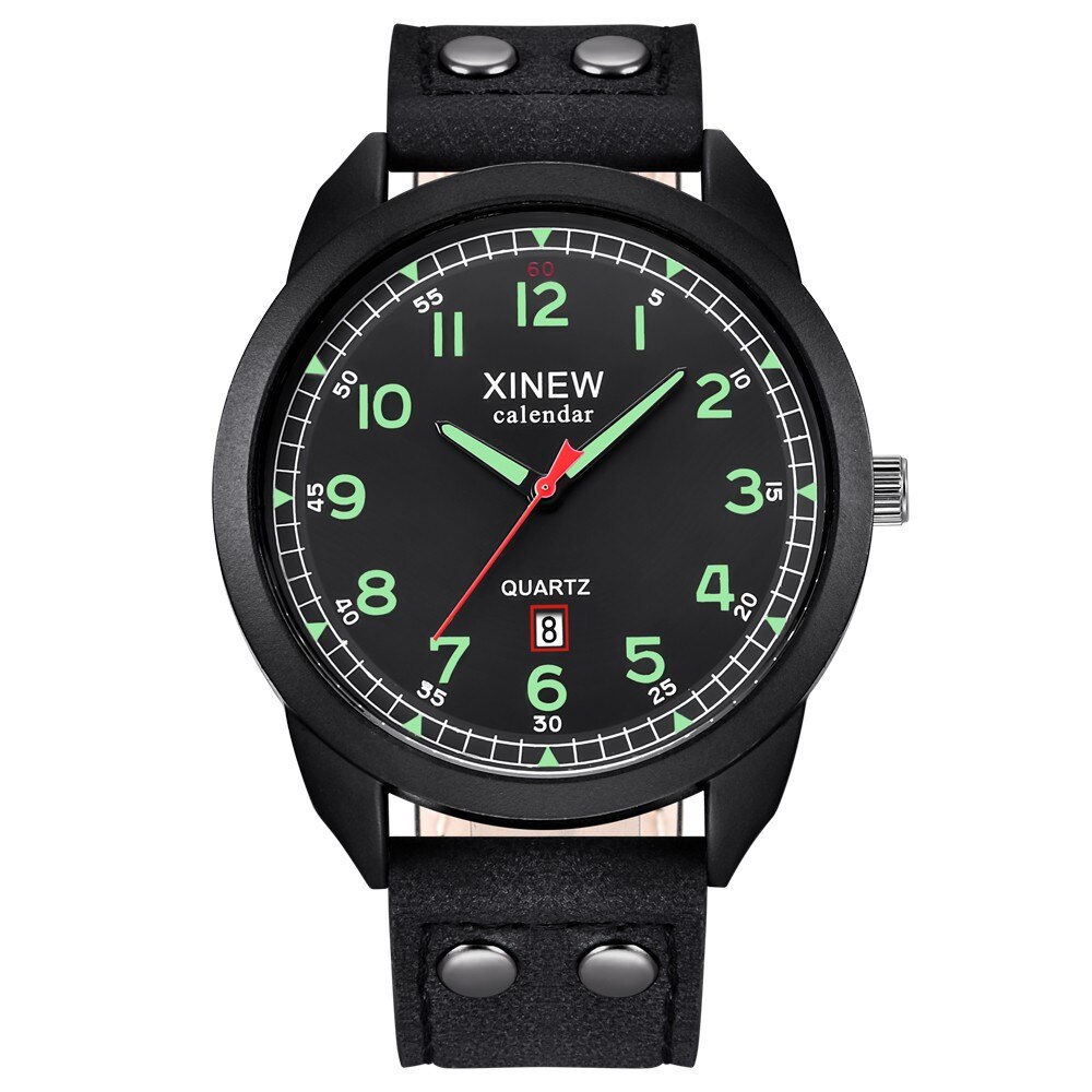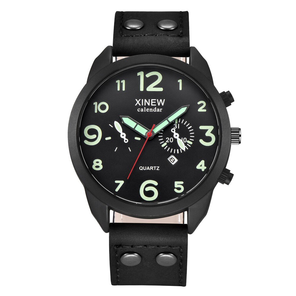 Xinew Men Watch Leather Strap Band Date Quartz Wrist Watch Round Dial For Men Roman Men's Watches Outdoor Clock