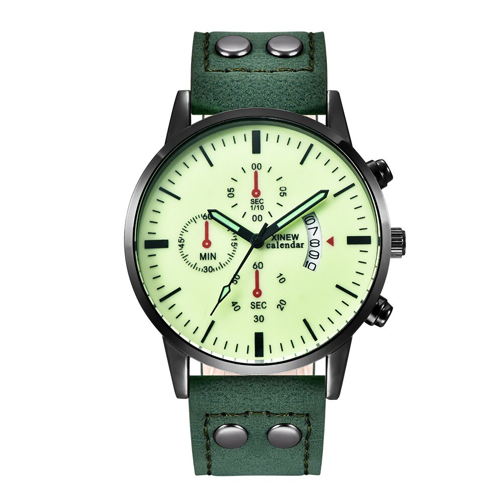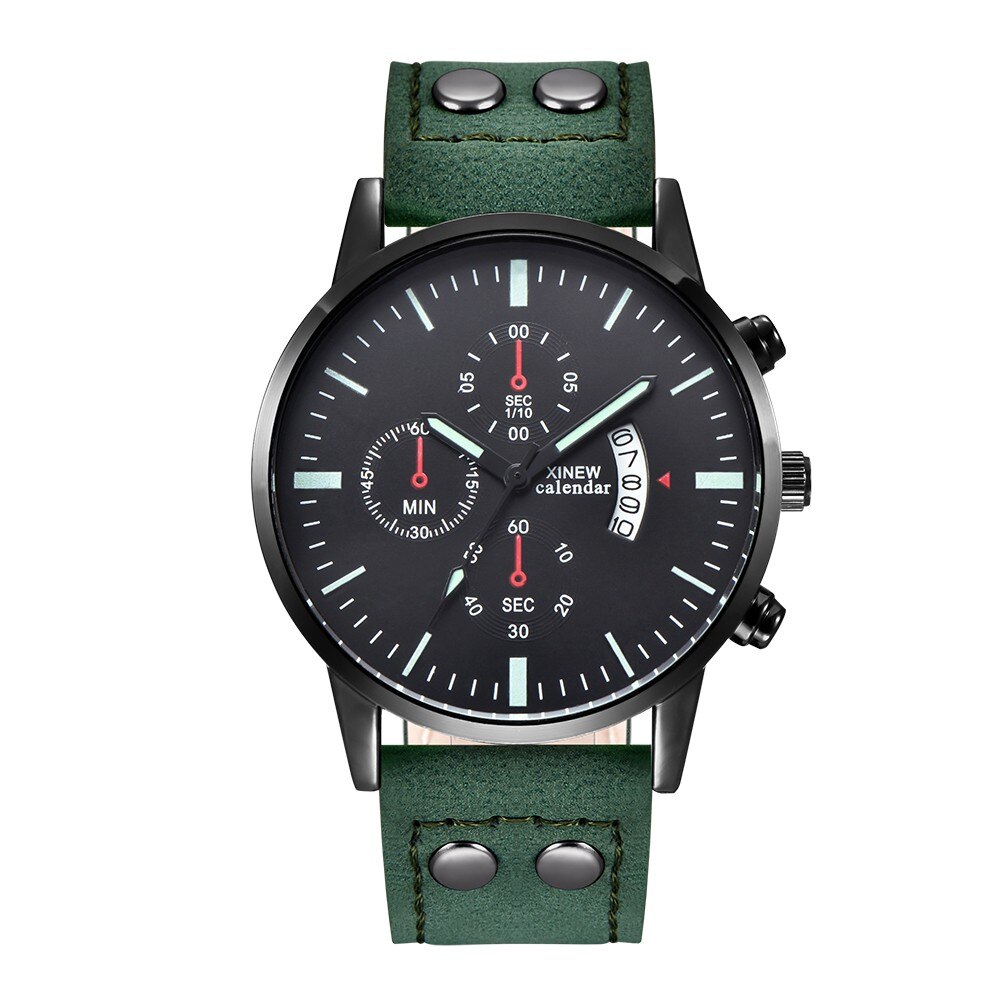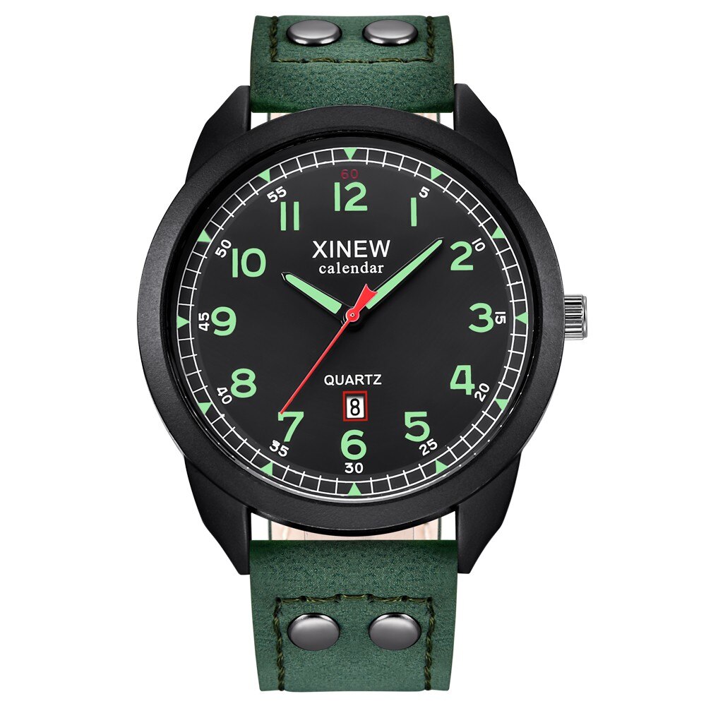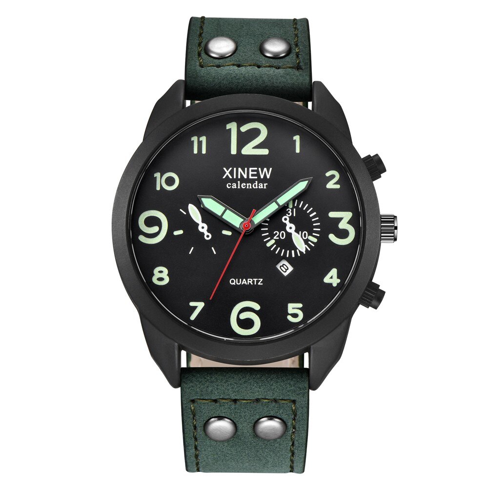 Xinew Men Watch Leather Strap Band Date Quartz Wrist Watch Round Dial For Men Roman Men's Watches Outdoor Clock